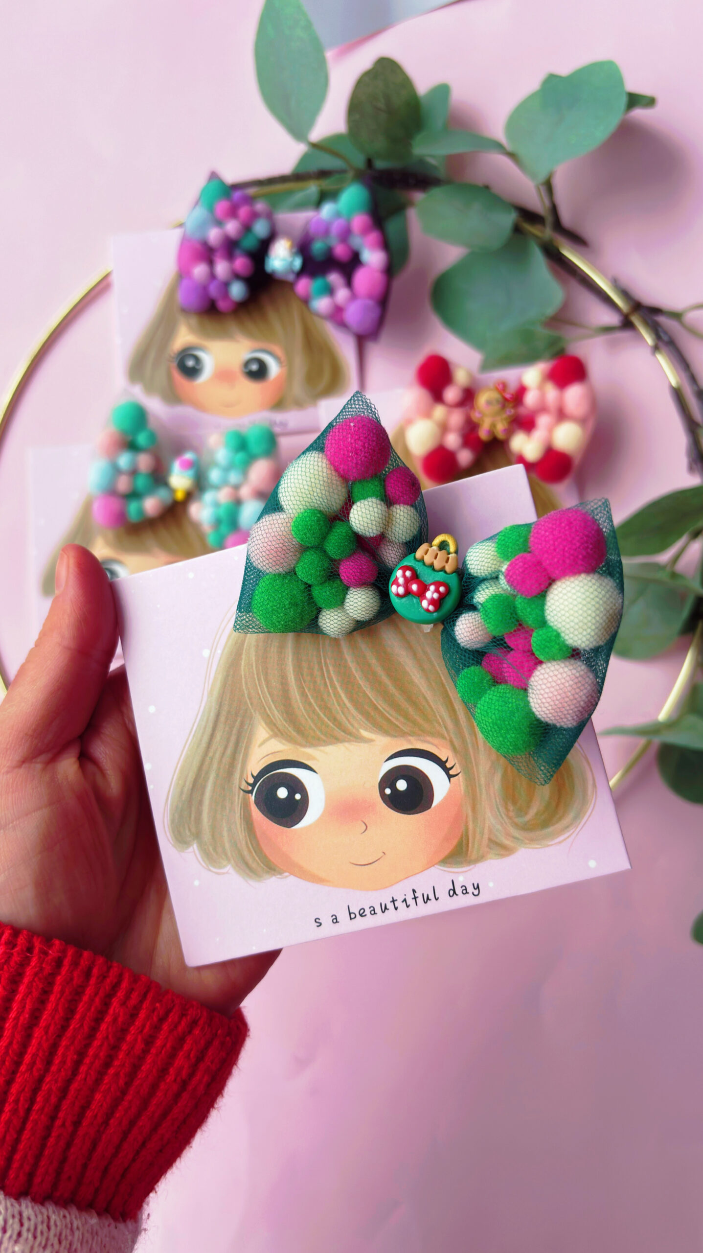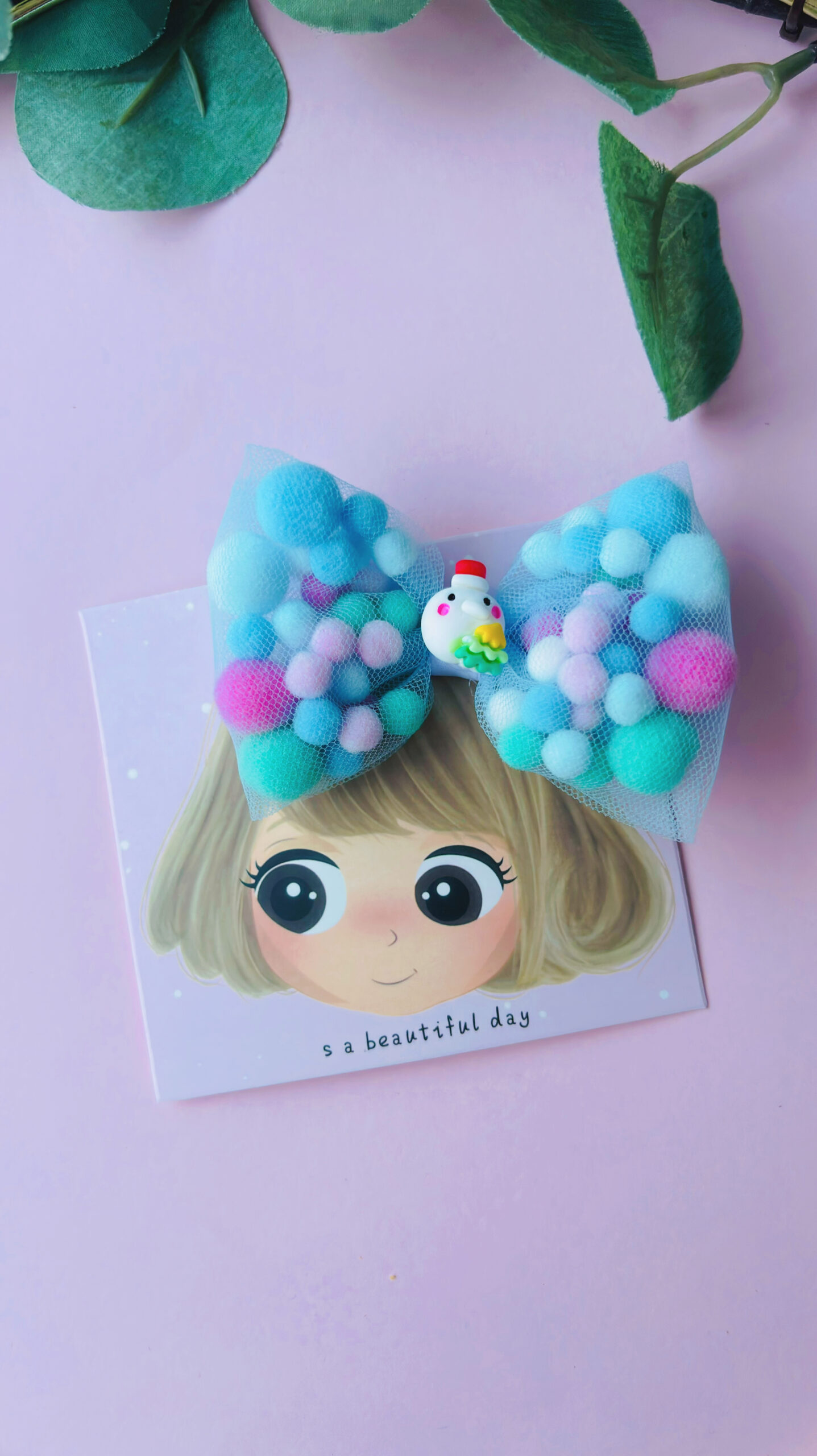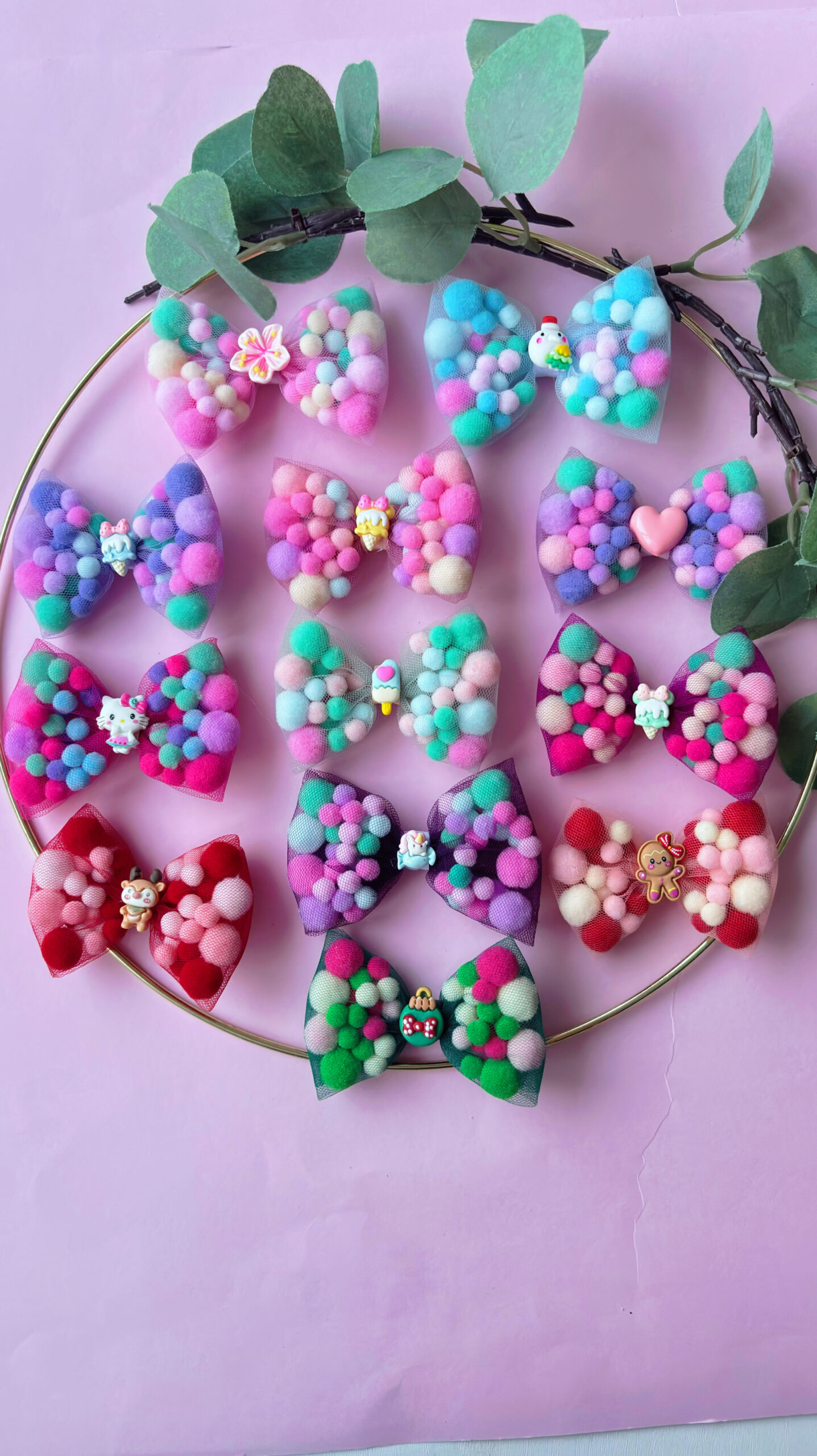 🎀 Clamă cu Fundă din Pompoane – Accesoriul Jucăuș și Colorat pentru Zile Vesele 🎀