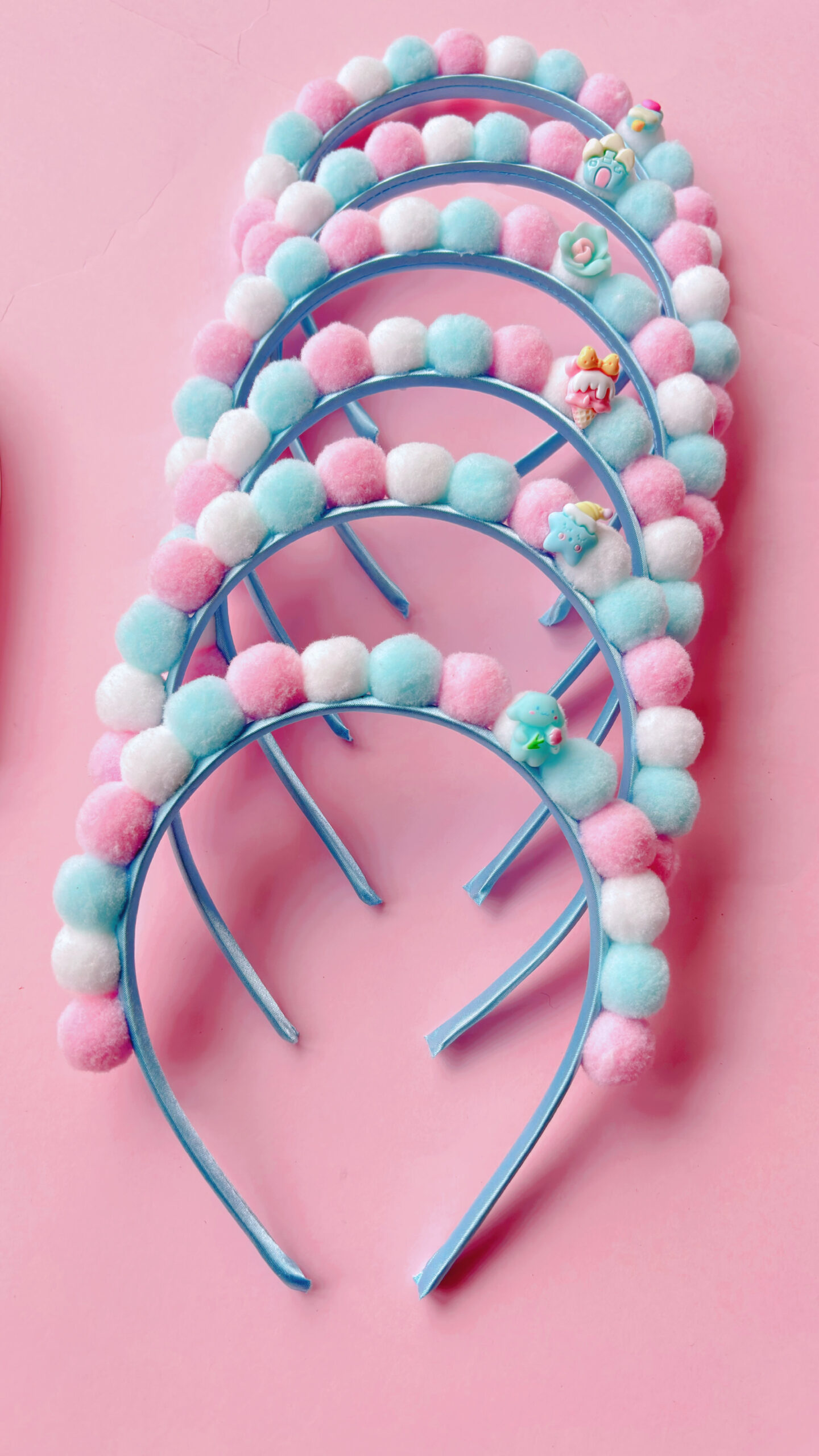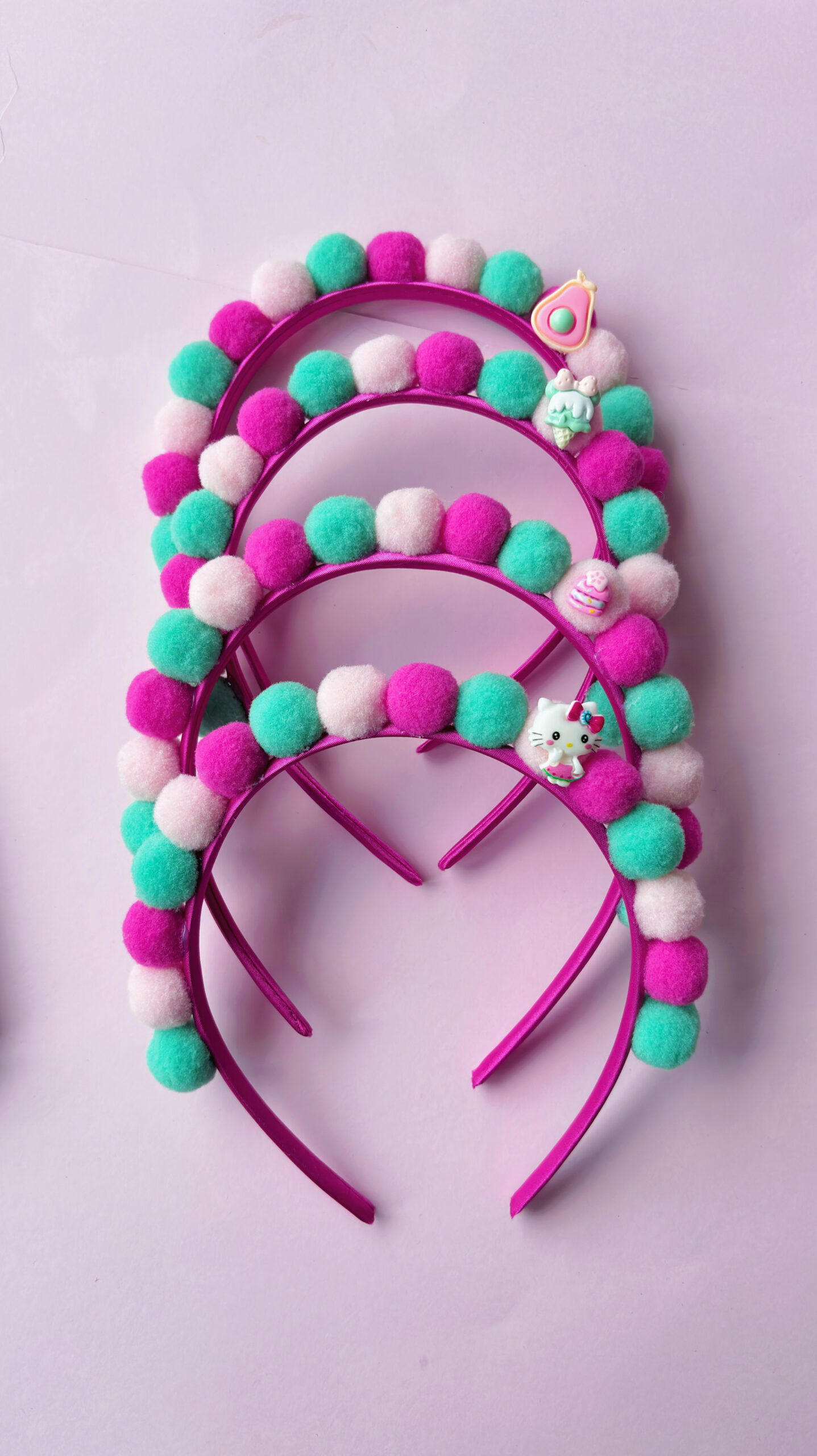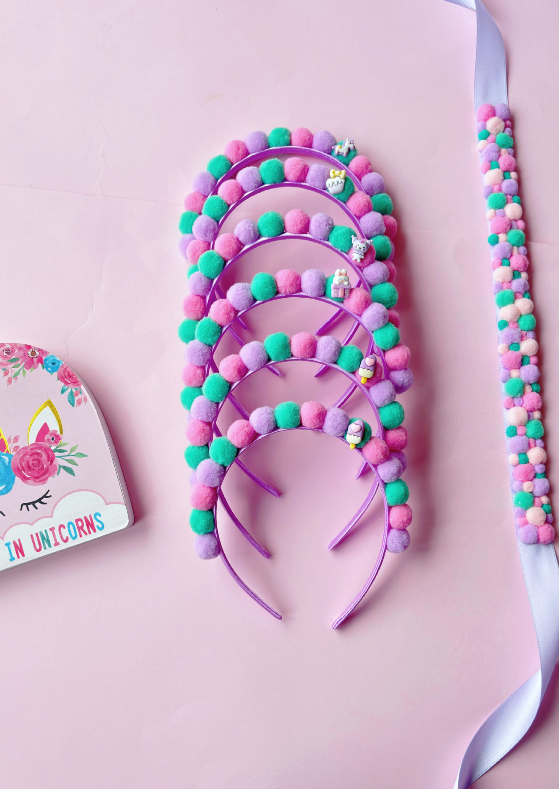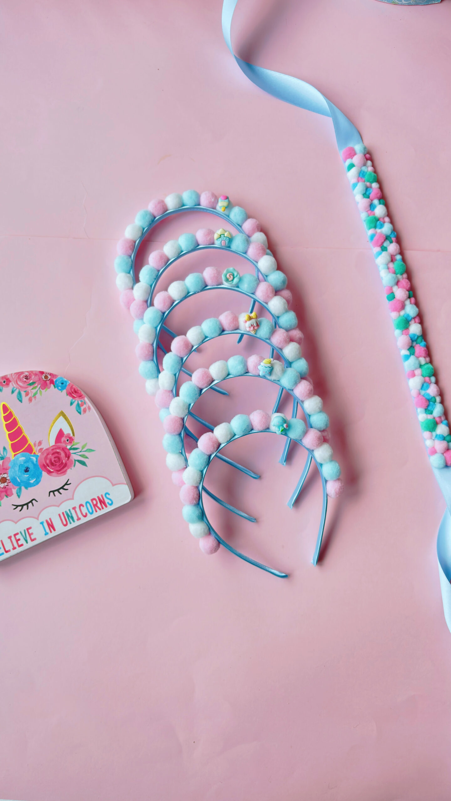 Adaugă un strop de culoare și magie ținutelor celor mici cu această coroniță adorabilă cu pompoane mari, în 6 nuanțe jucăușe!