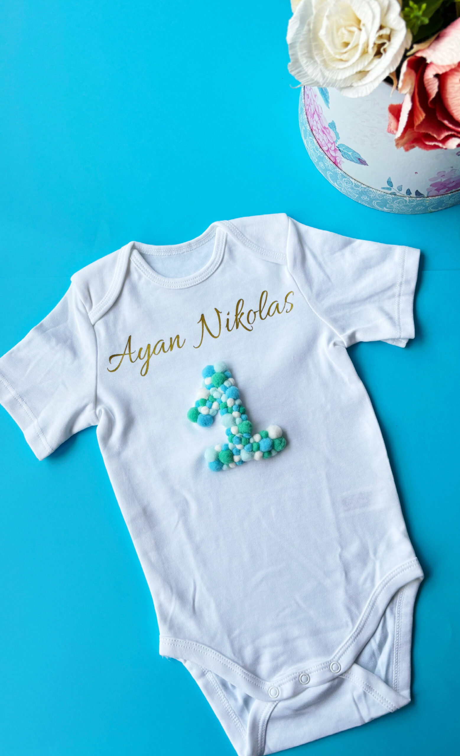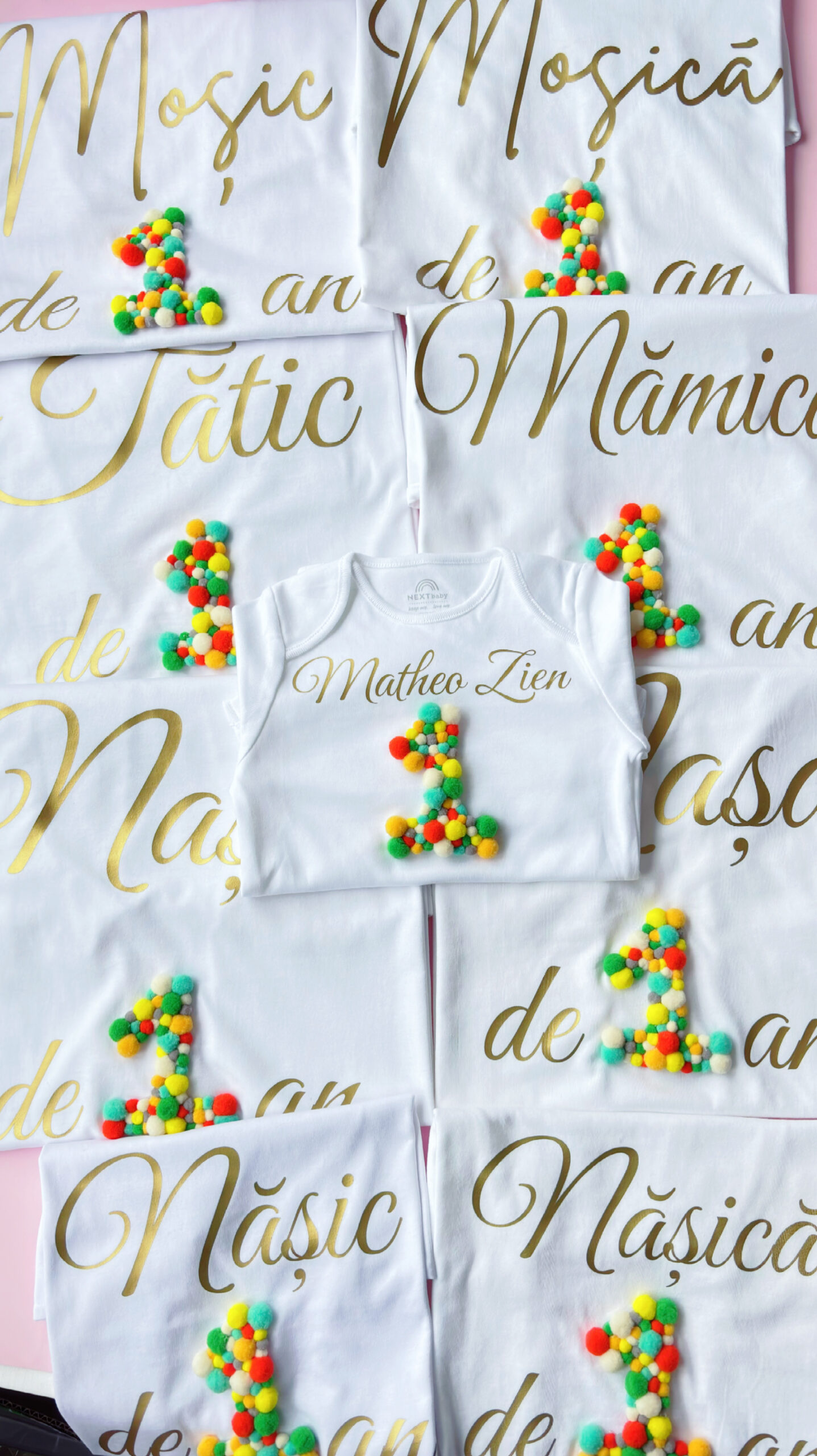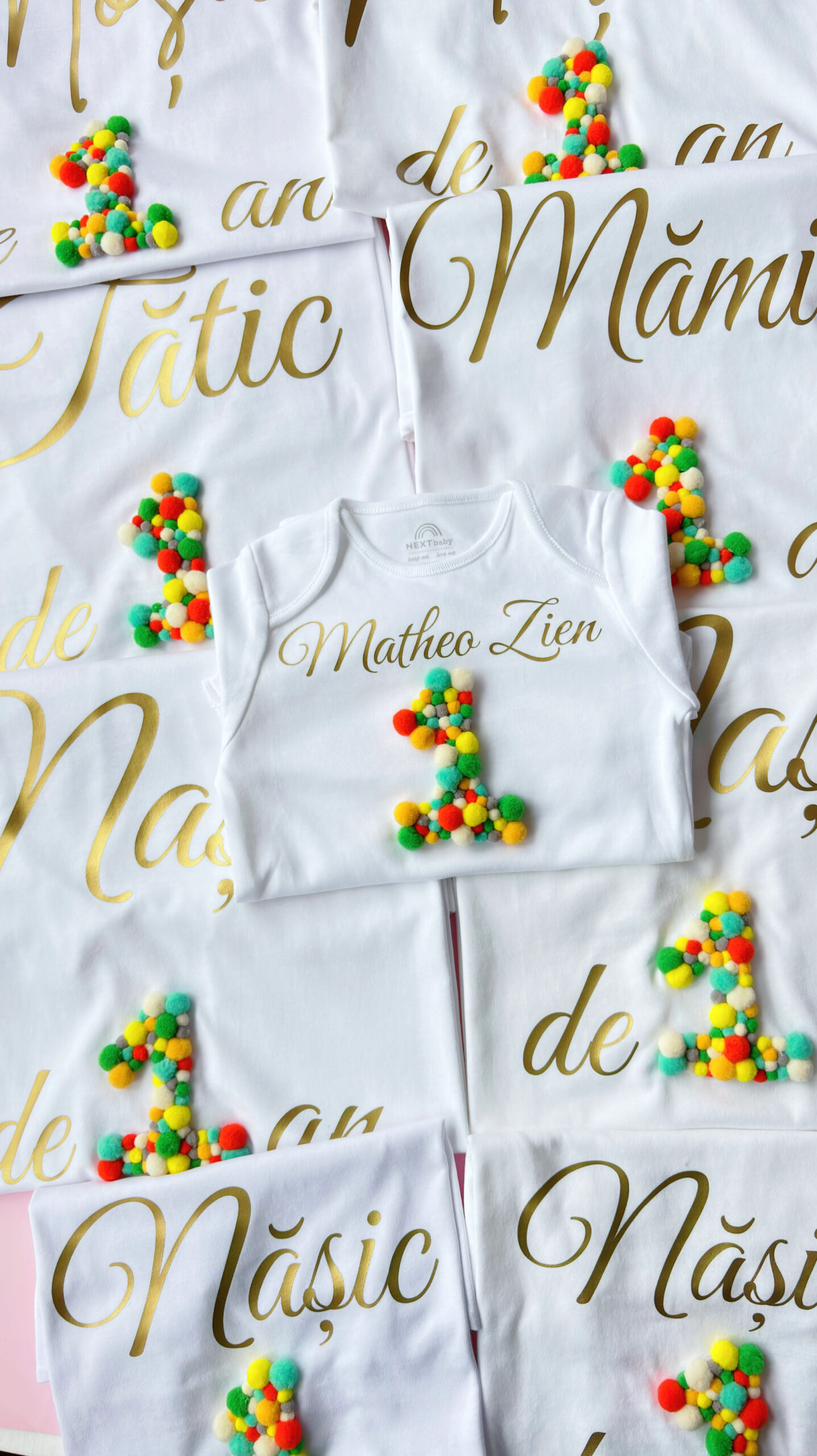 Tricou/Body cifră aniversara și pompoane pastelate – Magia momentului tău special!
